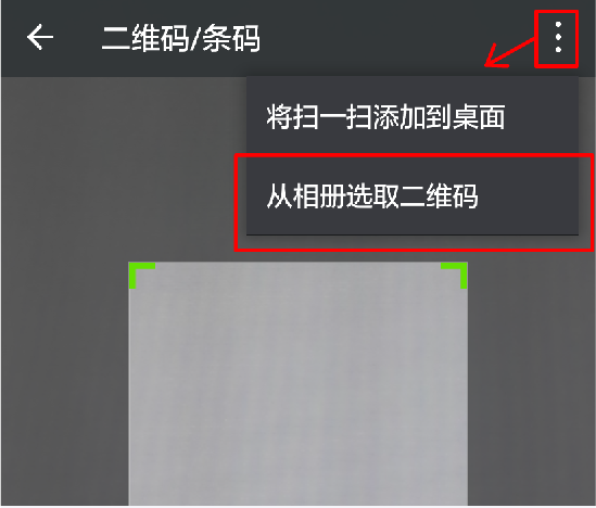 2.点击右上角的标签 ,选择 "从相册选取二维码"